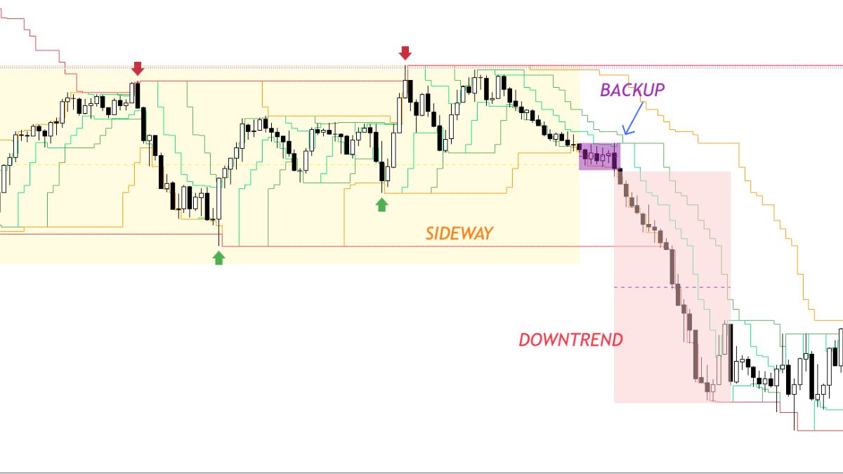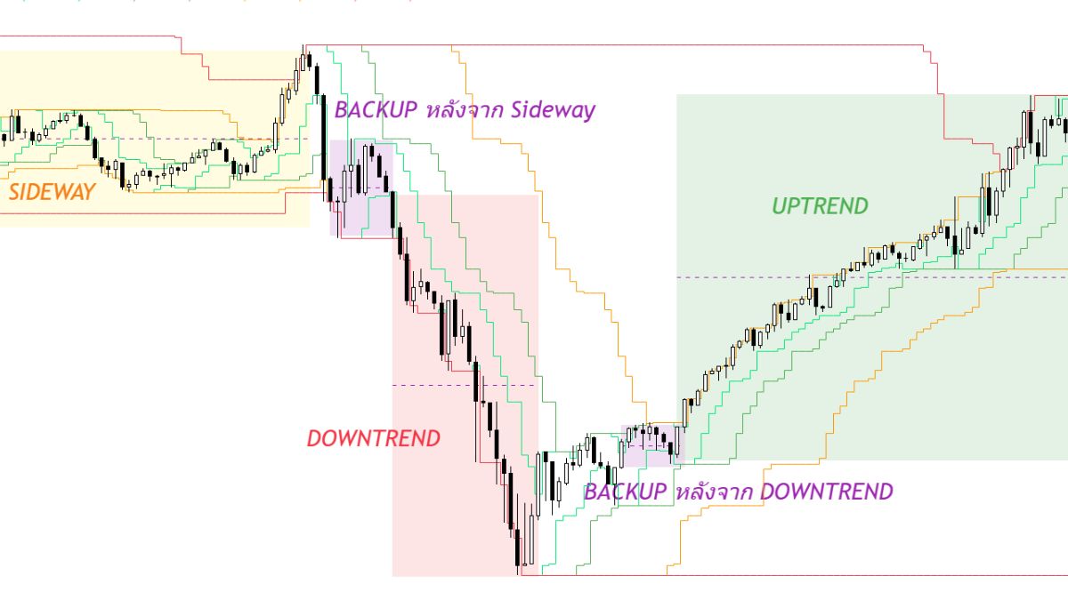 ในรูปจะเกิด SBT ก่อน ส่วน Backup สีม่วงด้านขวา จะเป็นการเกิด Trend Backup Trend ซึ่งเป็นการเกิด Downtrend แล้วตามด้วย Backup แล้วตามด้วย Uptrend เลย
