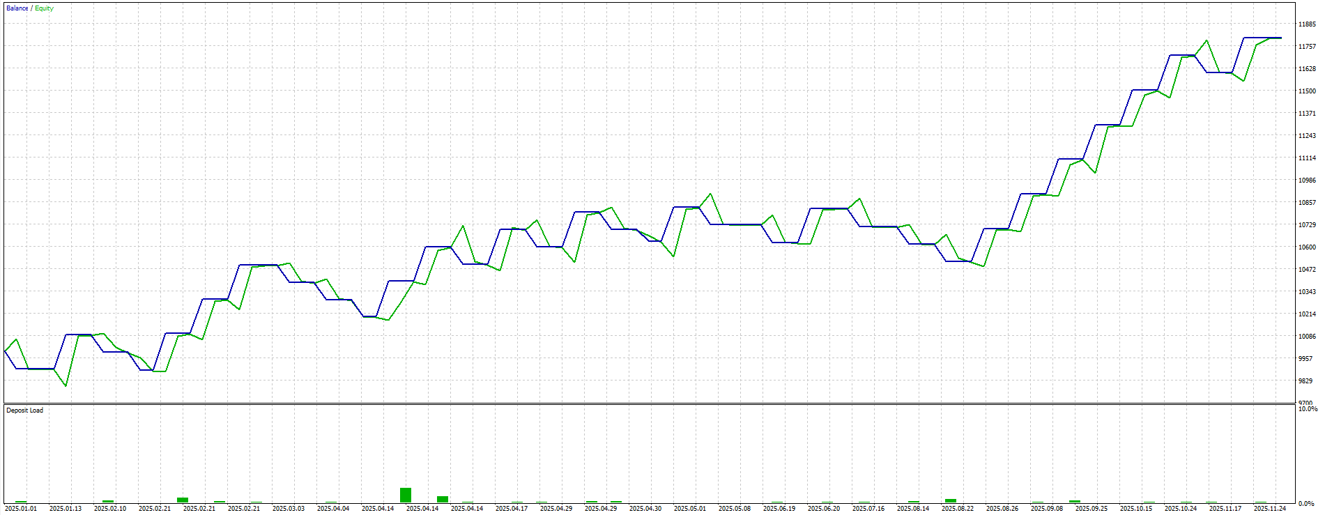 Expert = KZ One, Symbol = XAUUSDc, Period = M15 (2025.01.01 – 2025.11.30)